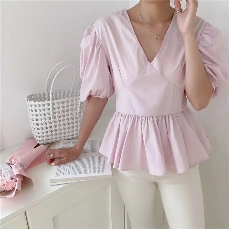Alien Kitty Лето 2020 новые милые универсальные минималистичные уличные сексуальные однотонные рубашки на шнуровке с пышными рукавами