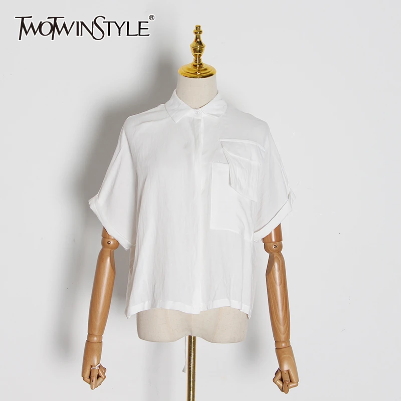 TWOTWINSTYLE блузки на шнуровке для женщин, воротник с лацканами, половина рукава, свободные, Осень-зима, женские рубашки 2019, модная одежда
