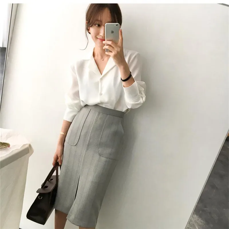 Hzirip корейские солидные свободные шикарные базовые OL формальные универсальные топы для офисных леди короткие женские тонкие рубашки уличная одежда для отдыха блузки