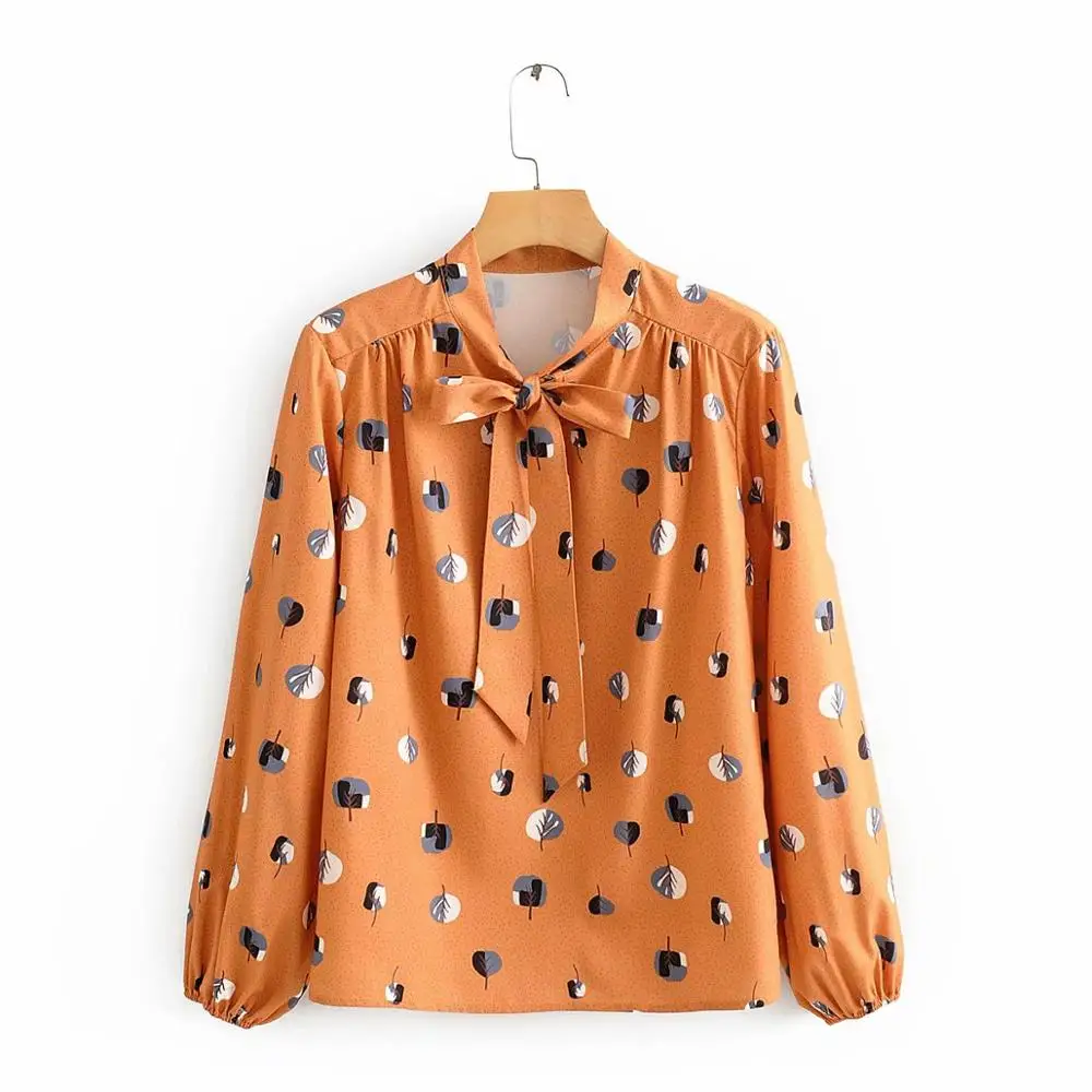 Модные женские туфли Блузки Рубашки с длинным рукавом шифон 2018 Осень Harajuku Винтаж Chic кран печатных геометрическая свободные Femme 0845 30