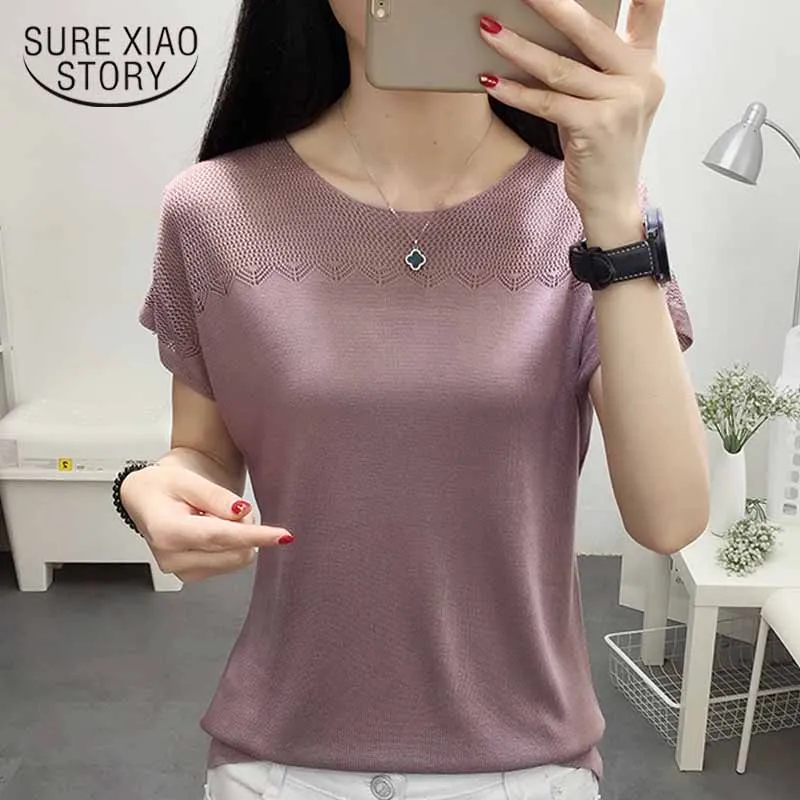 Модные женские блузки 2019 женские летние блузки с коротким рукавом женские элегантные вязанные блузки с вырезами женские блузы 3538 50