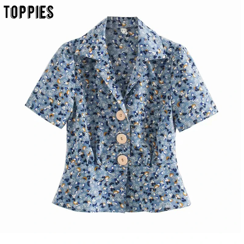 Toppies/летние рубашки с короткими рукавами; Женские рубашки с цветочным принтом во французском стиле; Короткие рубашки с лацканами; Элегантные женские топы