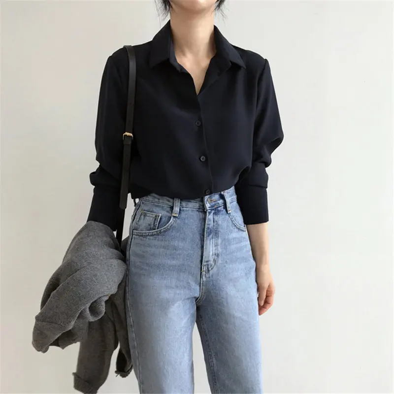 HziriP 2020 Новая женская рубашка классические базовые блузки Топы женские свободные повседневные рубашки с длинным рукавом OL стильная женская ...