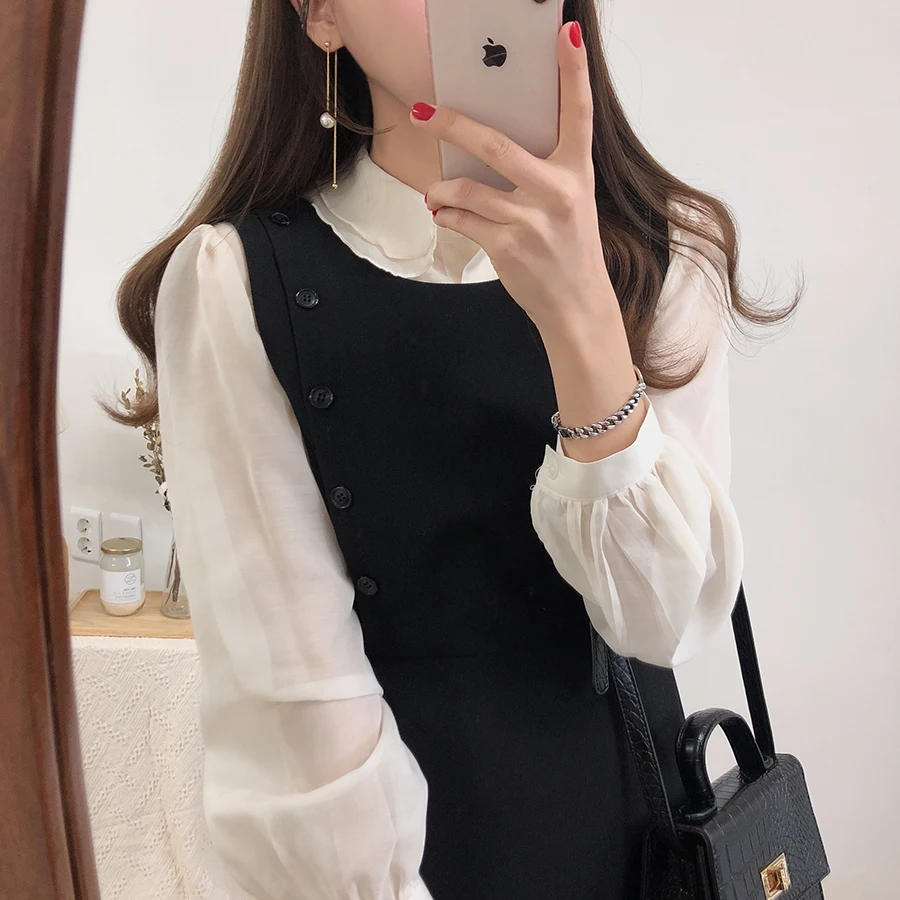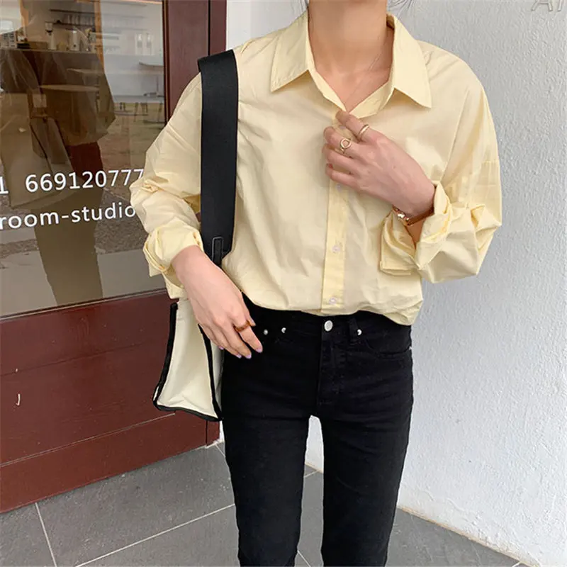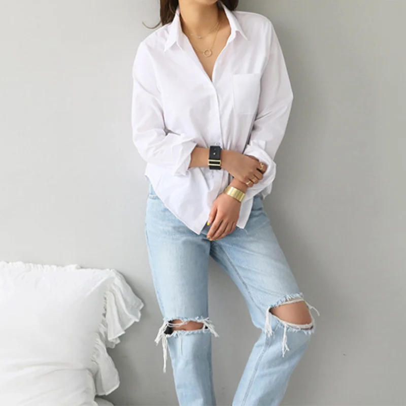 Распродажа, Женская белая рубашка, женская блузка, топы с длинным рукавом, повседневная, с отложным воротником, OL стиль, женские свободные бл...
