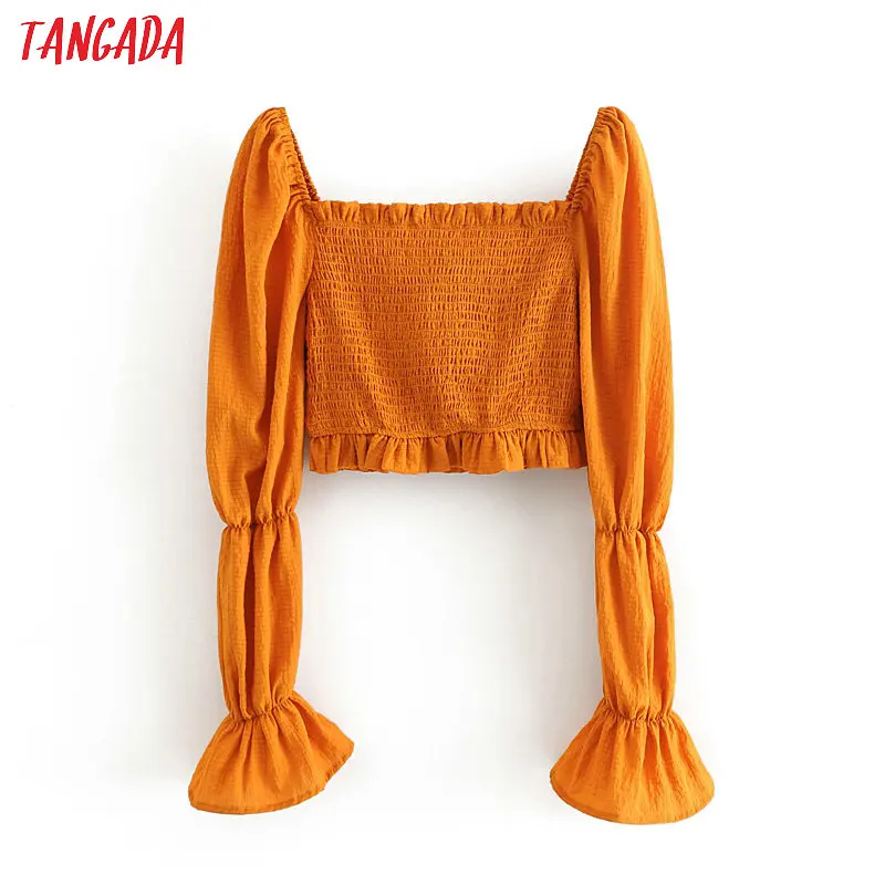 Женская укороченная блузка в стиле ретро Tangada, оранжевая блузка с длинным рукавом, Новое поступление 2020, шикарная Женская Сексуальная Облегающая рубашка, топы 3H575