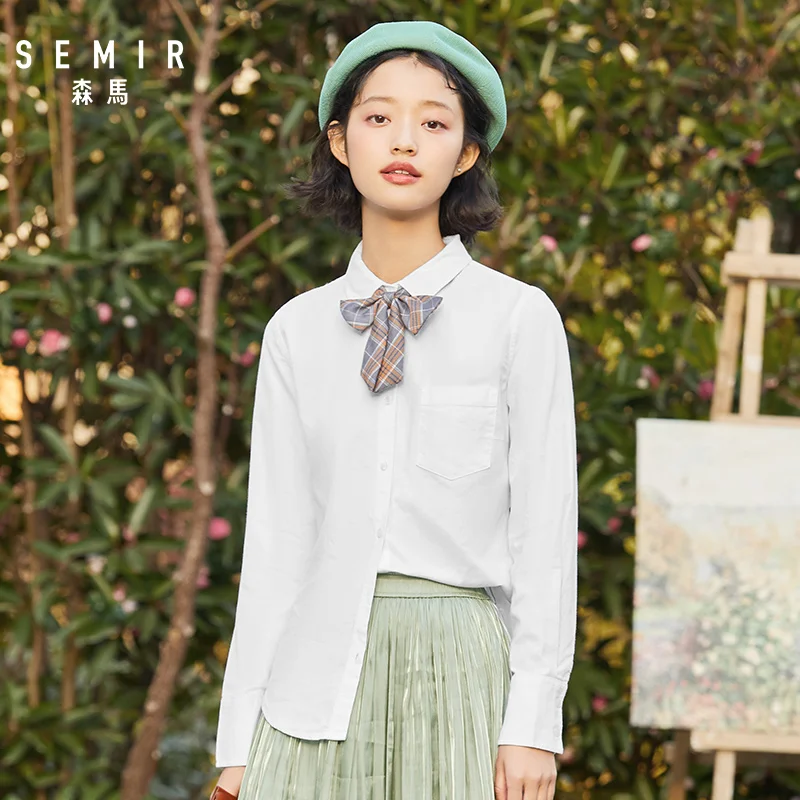 SEMIR, весна 2020, новинка, блузка с длинным рукавом, женская, хлопковая, дюймовая рубашка с отворотом, с карманом, топ, хлопковые топы, одежда