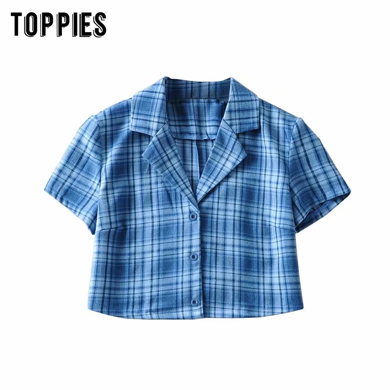 Винтажные клетчатые рубашки с коротким рукавом летние женские короткие топы короткие рубашки Сексуальная одежда 2020