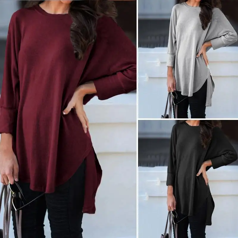 Женские длинные рубашки Celmia 2019 Осенняя винтажная рукав летучая мышь Повседневный Свободная блузка с неровным подолом туника топ одноцветн...