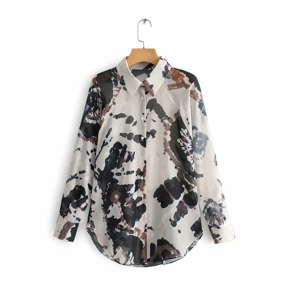 2019 Женские винтажные чернила печать картин Повседневная рубашка Блузки женские длинные рукава Перспектива шик blusas ретро-топы LS3980