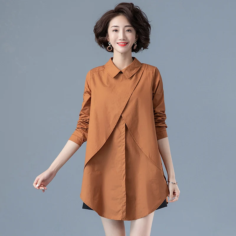 Новинка 2020, Весенняя женская одежда корейского размера плюс, Повседневная Свободная блузка, хлопковая длинная рубашка с молнией сзади, универсальная женская верхняя куртка 4XL