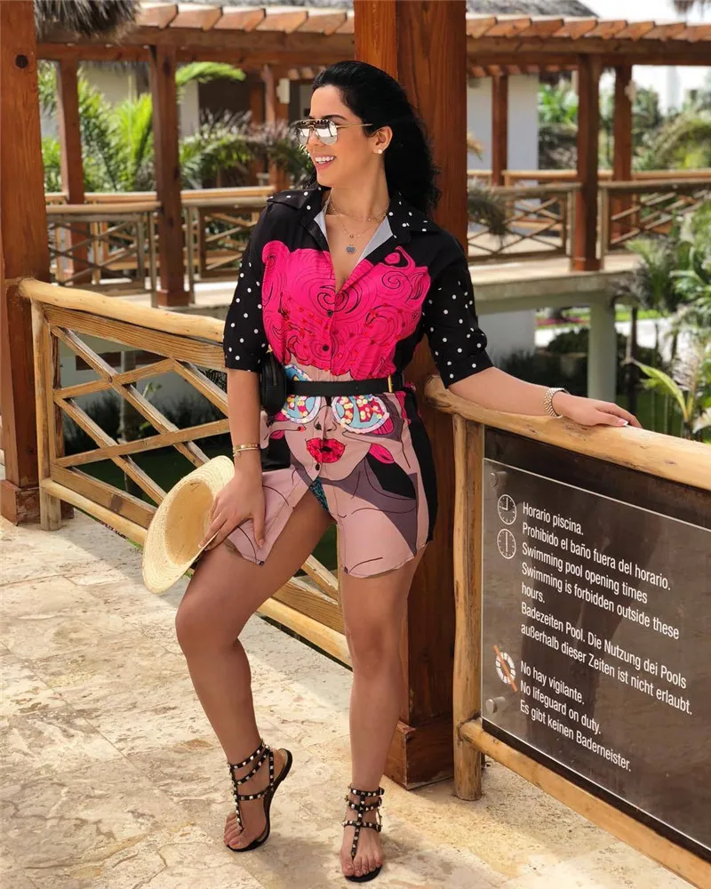 2018 блузка с принтом персонажа для женщин топы корректирующие и блузки для малышек Лето Половина рукава блесток отложной воротник повседнев