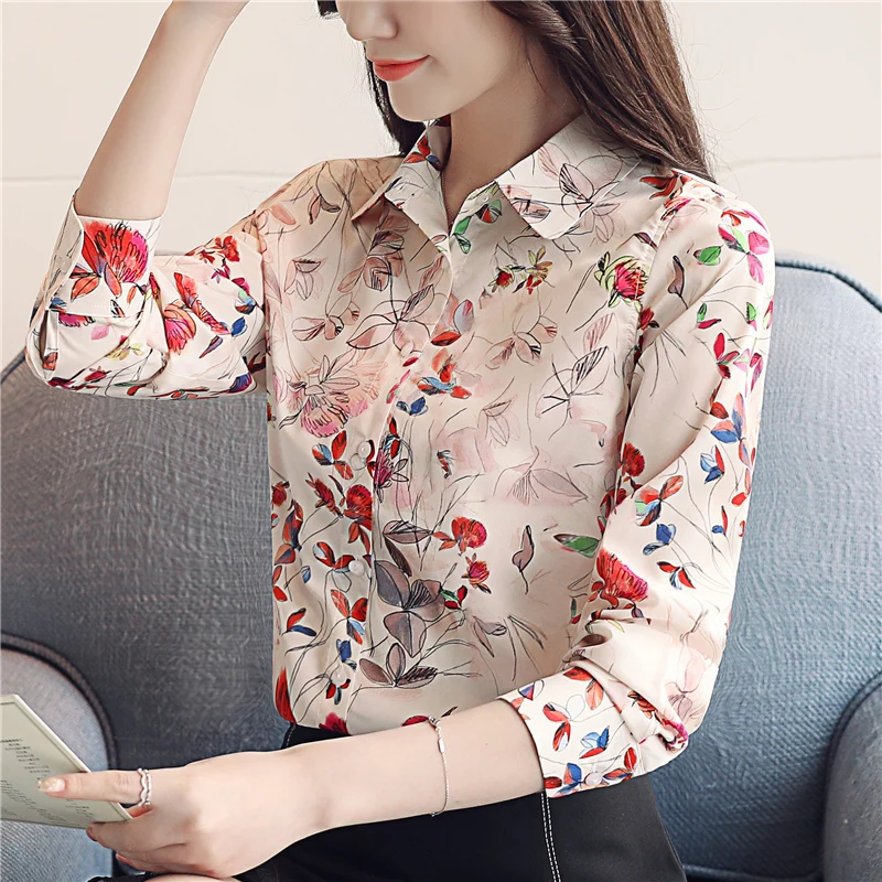 2019 Новое поступление Женская блузка Цветочная шифоновая блузка темперамент свободный длинный рукав приталенный корейский стиль женский т...