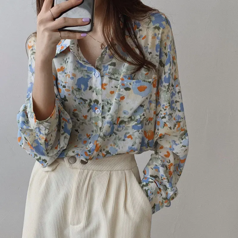 Alien Kitty, шикарные корейские свободные рубашки с длинным рукавом и солнцезащитным отворотом, однобортные кардиганы с цветочным принтом 2020, женская блузка, пальто