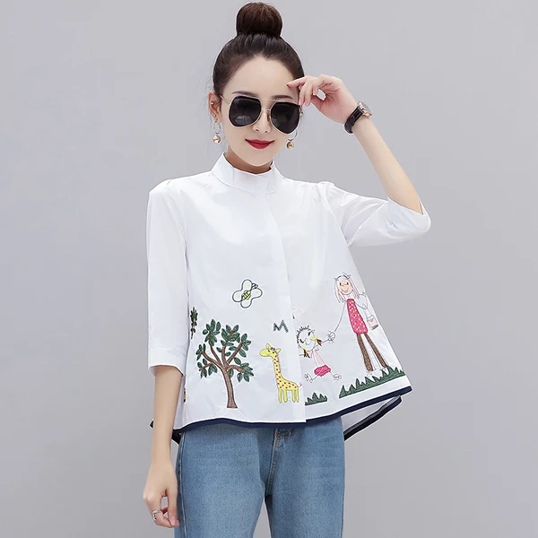 Весенне-осенняя Женская мультяшная рубашка, корейская модная мультяшная рубашка с длинными рукавами для девочек, Женская Повседневная рубашка, женская блузка GD267