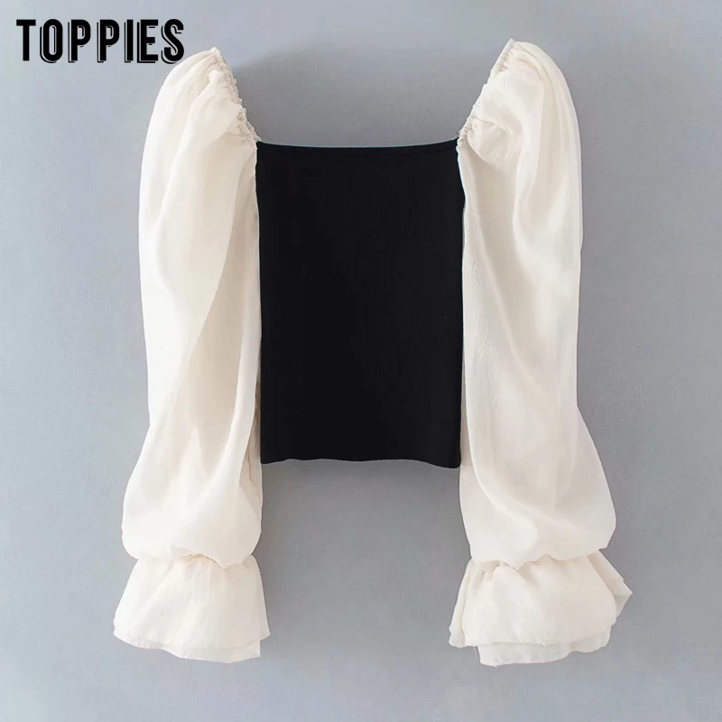 Летние рубашки с длинным рукавом, сетчатые топы, Женские винтажные топы с квадратным воротником, милые рубашки