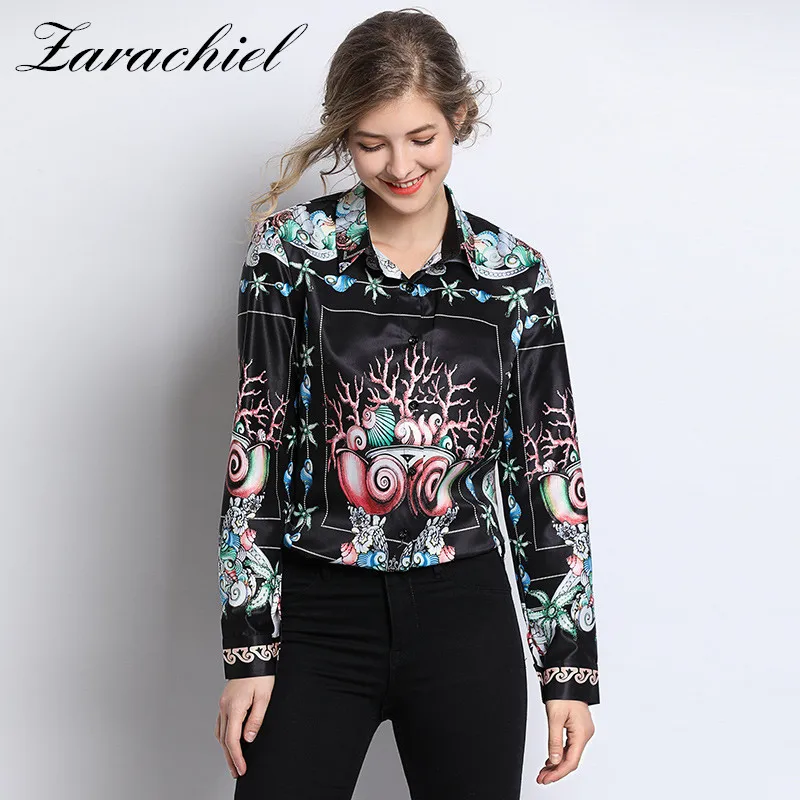 Новые модные блузки с принтом женские длинные стильные рубашки 2018 хлопок женские топы с длинным рукавом Blusas Femininas Плюс Размер Женская одежд...