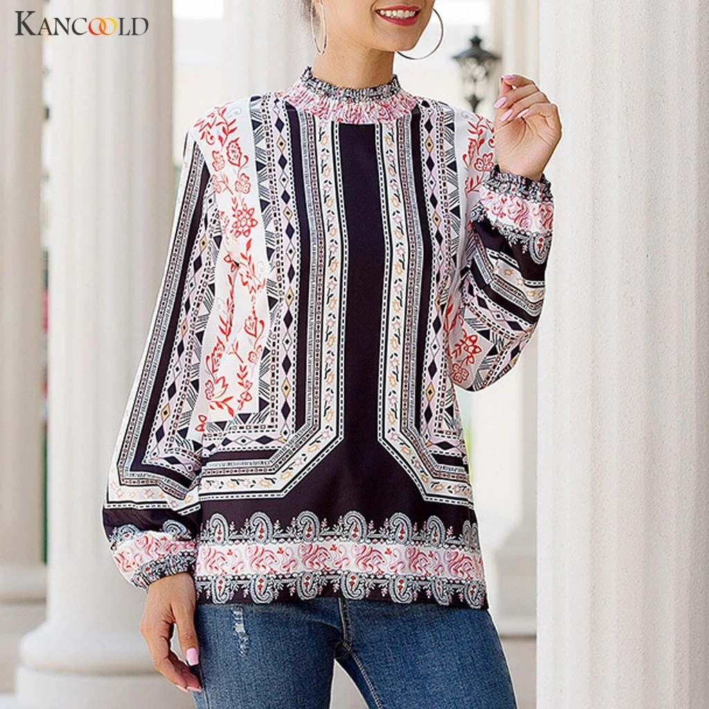 KANCOOLD Женская модная рубашка с длинным рукавом и принтом, рубашка с вертикальным рукавом, Осенние новые женские рубашки 2019 NOV8