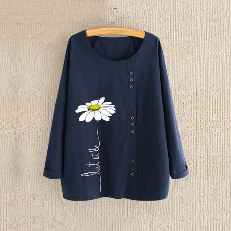 Женская блузка с принтом 2019 Осенняя модная Маргаритка повседневная женская рубашка с длинными рукавами туника большого размера сорочка То...