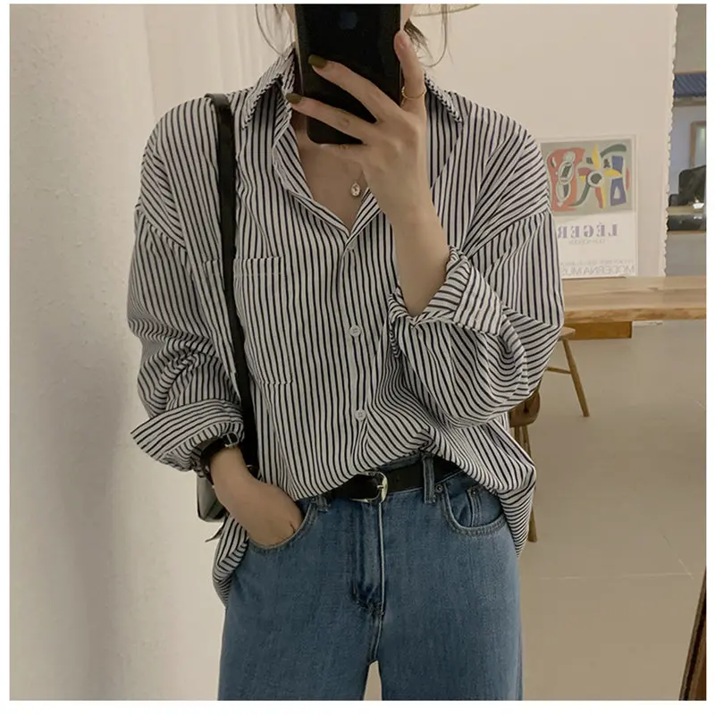 HziriP шикарные полосатые новые весенние 2020 Женские базовые рубашки, популярные повседневные свободные топы для отдыха, женские стильные блузки