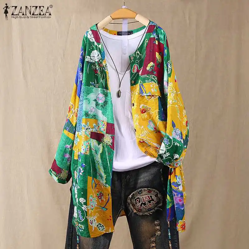 M 5XL ZANZEA 2019 весенние кардиганы, винтажные повседневные рубашки с длинным рукавом, модные женские блузки с цветочным принтом, женские туники