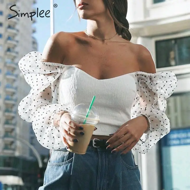 Simplee, Сексуальная Блузка с открытыми плечами, рубашка, женская, весна-лето, белая, сетчатая блузка, повседневная, крутая, блузка, женская мода, топ, новинка 2020