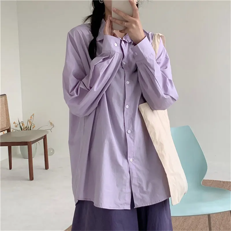 Женские осенние Рубашки на пуговицах с длинным рукавом, модные повседневные блузки, женские однотонные рубашки