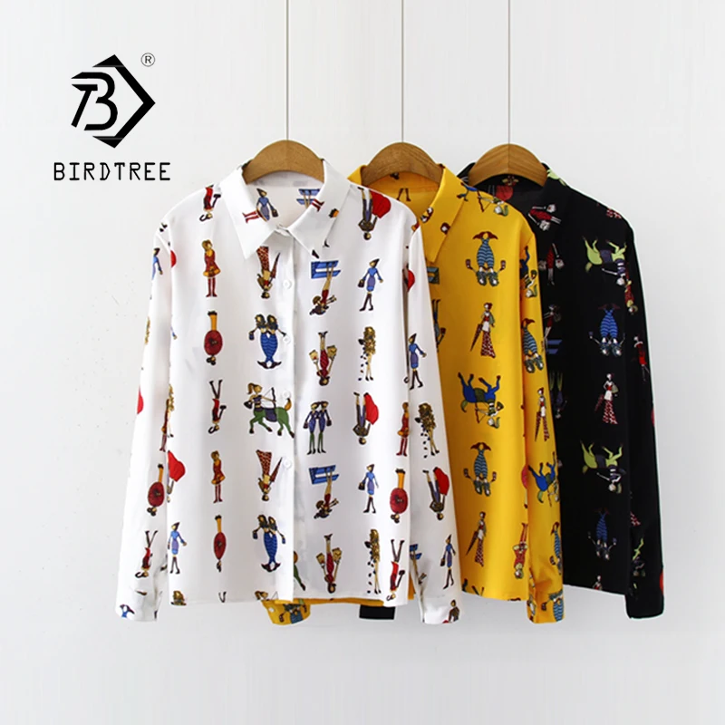 Новое поступление, шифоновая желтая блузка с отложным воротником и принтом с героями мультфильмов Повседневная Свободная белая рубашка на ...