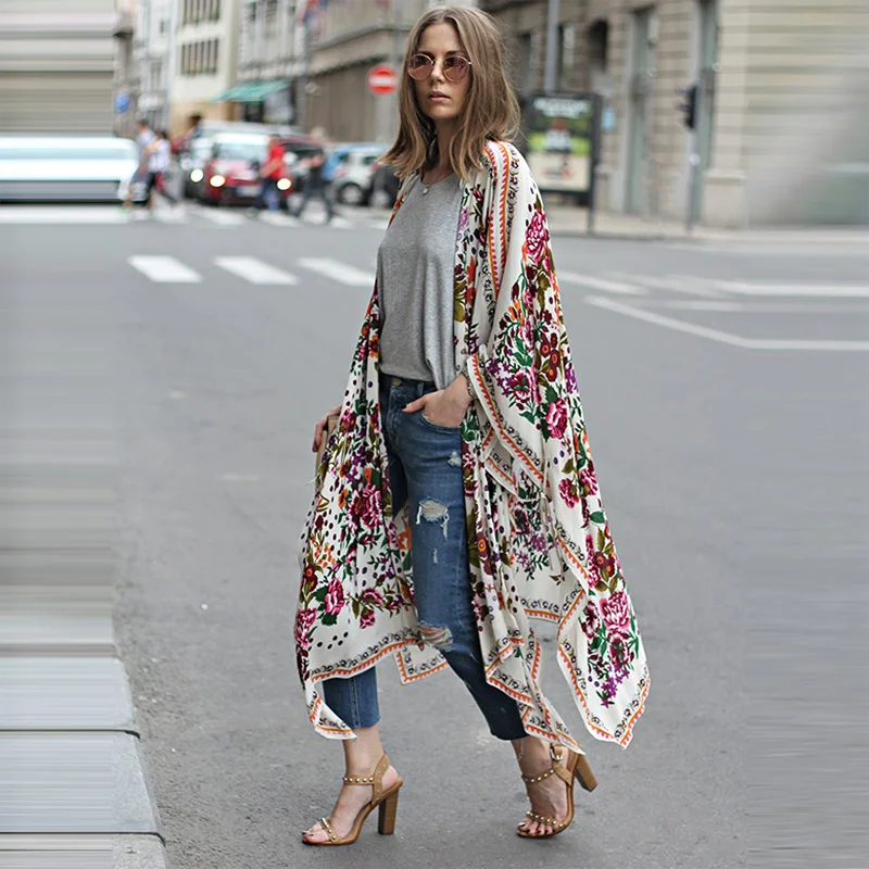 Женское шифоновое кимоно кардиган с цветочным леопардовым принтом Асимметричная богемная одежда 2020 Летнее Длинное Кимоно размера плюс 3XL 5XL накидка Ups