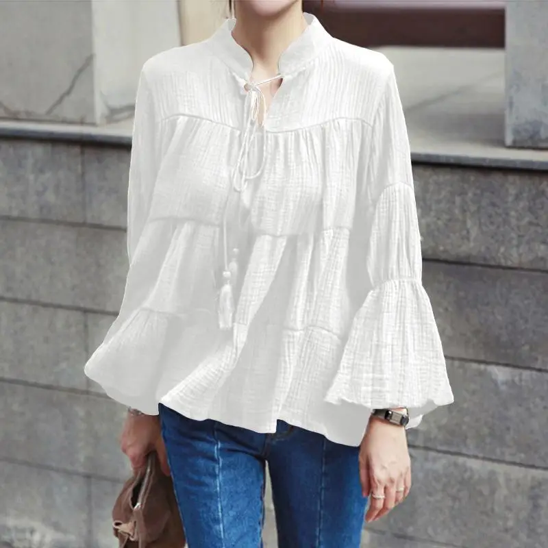 Женская офисная блузка, повседневные однотонные топы в винтажном стиле с длинным Расклешенным рукавом, Shrrts VONDA, весна-лето 2020, рубашки для вечеринок, блузы размера плюс
