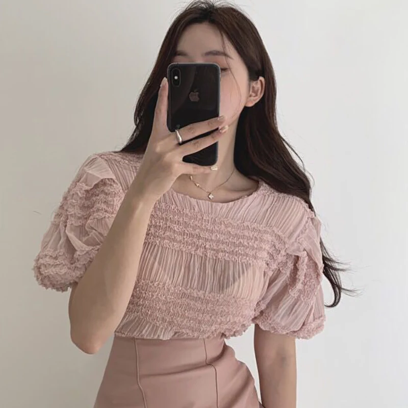 Мягкая женская шифоновая рубашка в горошек, Летние Элегантные женские модные прозрачные блузки, вечерние повседневные топы для девочек, femme chic
