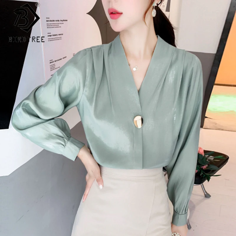 Новинка весны 2020, женская рубашка с v-образным вырезом, винтажная женская блузка с рукавом-фонариком, модные топы с дизайнерским ощущением, T9D612O
