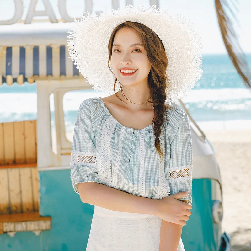 INMAN 2020 г.; Новое поступление; летний пуловер в клетку с кружевом; блузка с короткими рукавами