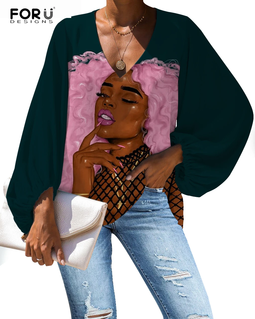 FORUDESIGNS/африканская женская блузка с узором, 2020, Женская Повседневная летняя Свободная блузка с v-образным вырезом и длинным рукавом, женская мягкая Комфортная рубашка