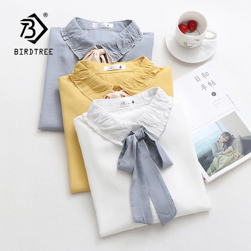 Новинка 2020, Корейская тонкая Женская приталенная рубашка с длинным рукавом, модные шифоновые белые блузки, рубашки, женская одежда, женские рубашки 11G