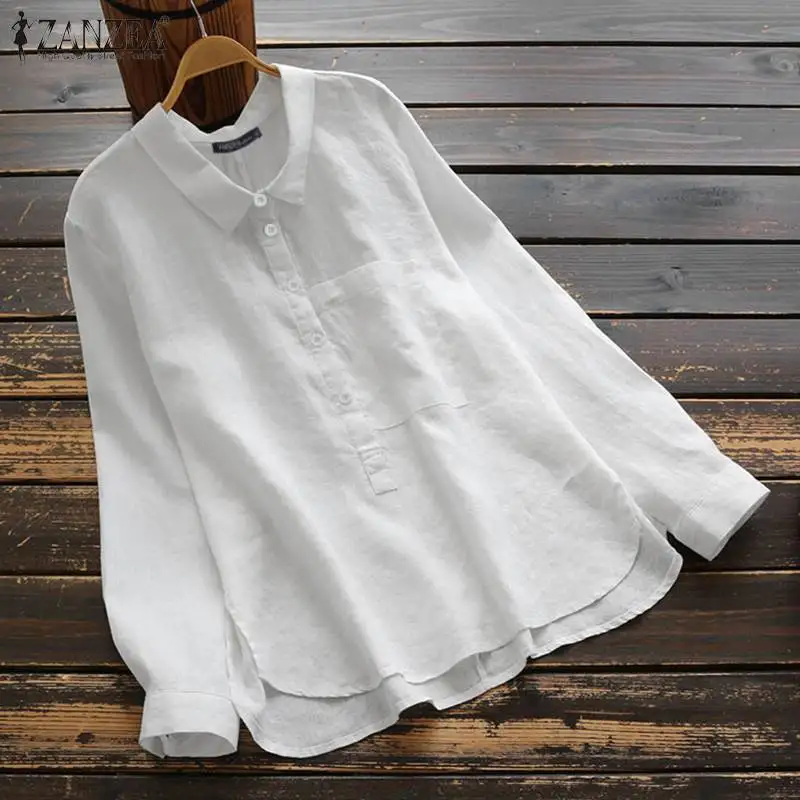 ZANZEA Женские топы и блузки офисные шикарные Рубашки повседневные с длинным рукавом пуговицы Blusas нагрудные шеи Туника Топы Хлопок сорочка 5XL