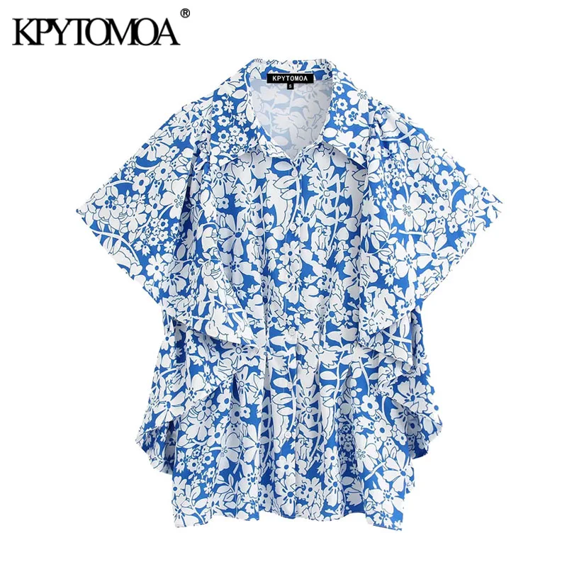 KPYTOMOA женские элегантные модные блузки с оборками и цветочным принтом, винтажные женские рубашки с отложным воротником и длинными рукавами, женские блузы, шикарные топы, 2020