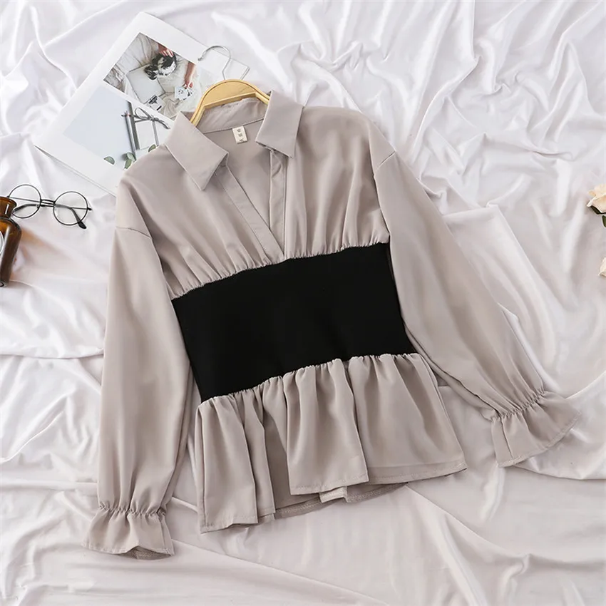 2019 весна тонкий Для женщин блузка с заплаткой элегантный Винтаж женские офисные шифоновая рубашка Лето с длинным рукавом Blusas базовые Топы ...