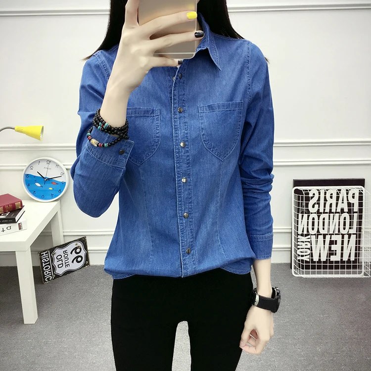 Весна 2020, Весенняя женская блузка с длинным рукавом, Модная Тонкая джинсовая рубашка, Офисная Женская одежда, джинсовые блузы, джинсы 180C