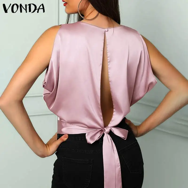 2019 VONDA для женщин Летняя Блузка майка Сексуальная клубный Топ спинки Повседневная безрукавная футболка на бретелях плюс размеры Туника Patry ...