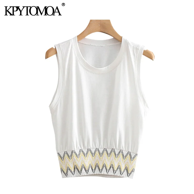 KPYTOMOA Женская мода 2020 эластичные свободные к низу блузки винтажные с круглым вырезом без рукавов Женские рубашки Blusas шикарные топы