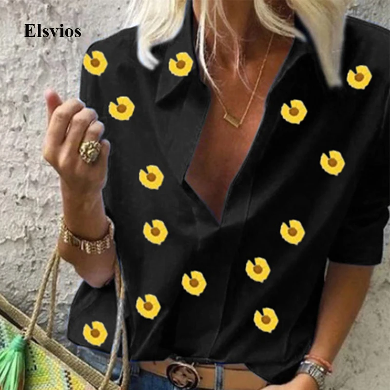 Elsvios 5XL Осенняя женская блузка с принтом в виде цепочки Сексуальная блуза с v-образным вырезом офисная Дамская блуза рубашка Элегантная Осен...