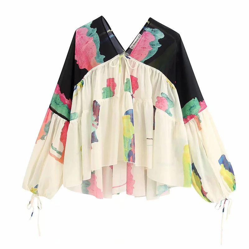Новый темперамент был тонкий капюшон прямой тип 2019 Весна Модная женская рубашка Печать Украшенные v-образным вырезом шифон женщин 2217 50