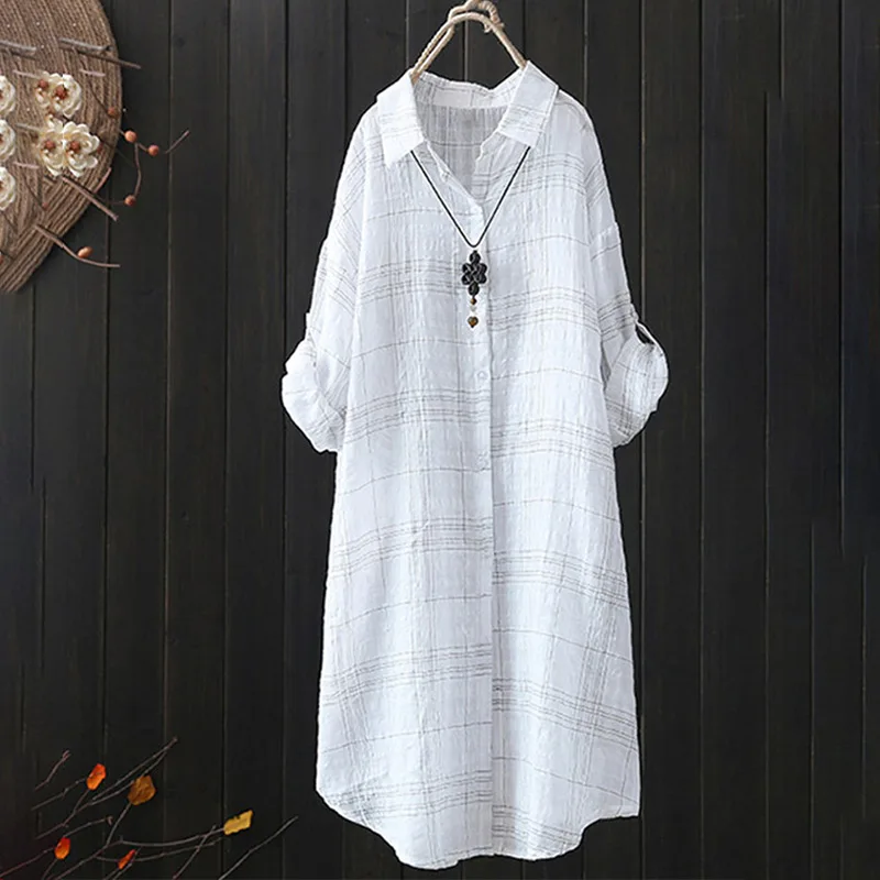 Клетчатые женские длинные блузки с длинным рукавом, отложной воротник, однобортная рубашка, лето-осень 2019, Свободный Повседневный тонкий топ размера плюс