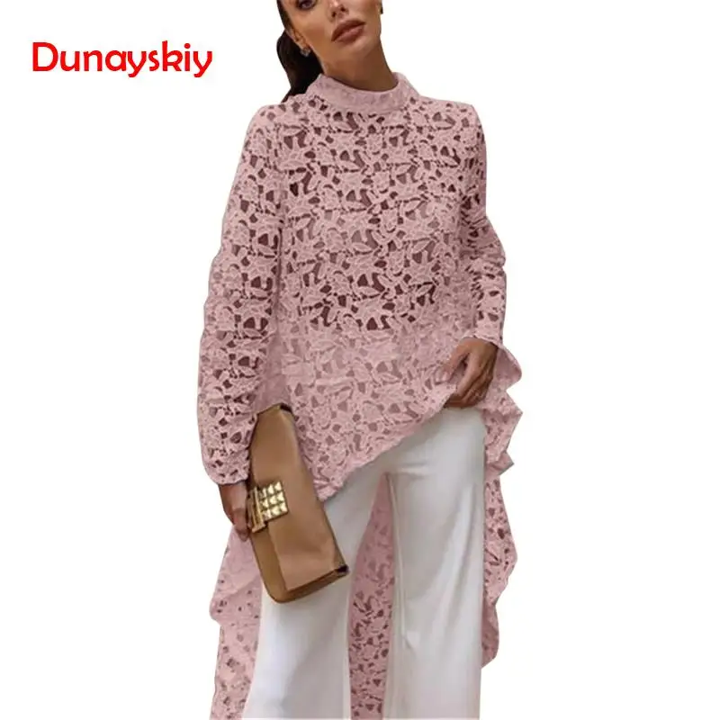 2019 демисезонный для женщин открытая футболка кружево с длинным рукавом Нерегулярные блузка свободные Флора печатных топы корректирующи