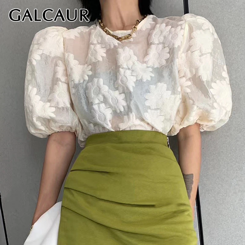Женская рубашка с вышивкой GALCAUR, летняя блузка оверсайз с круглым вырезом и короткими рукавами, Корейская одежда 2020