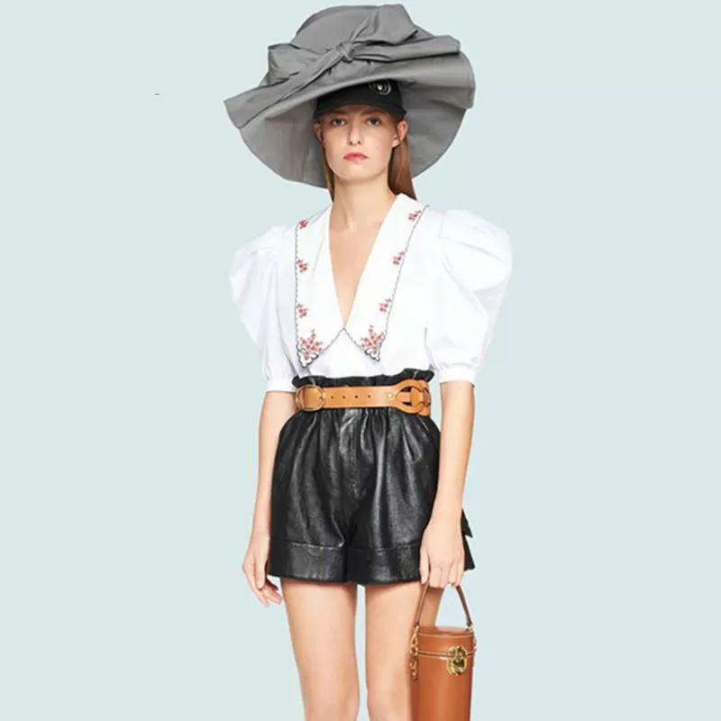 Женская белая блузка, весна 2020, винтажная Цветочная вышивка, лацканы, свободные, половина рукава, женская блузка с буфами на рукавах, шифон, П...
