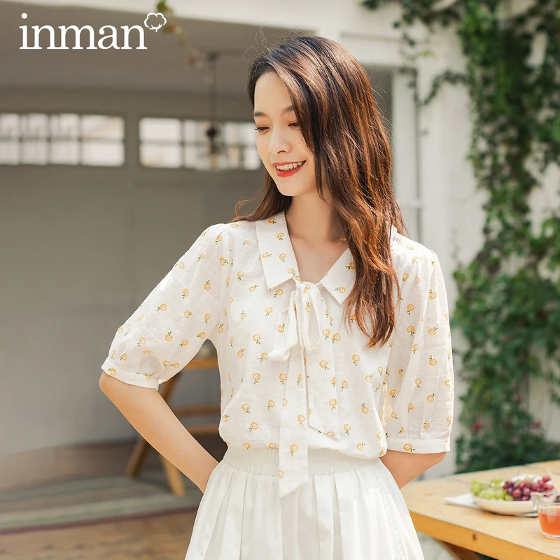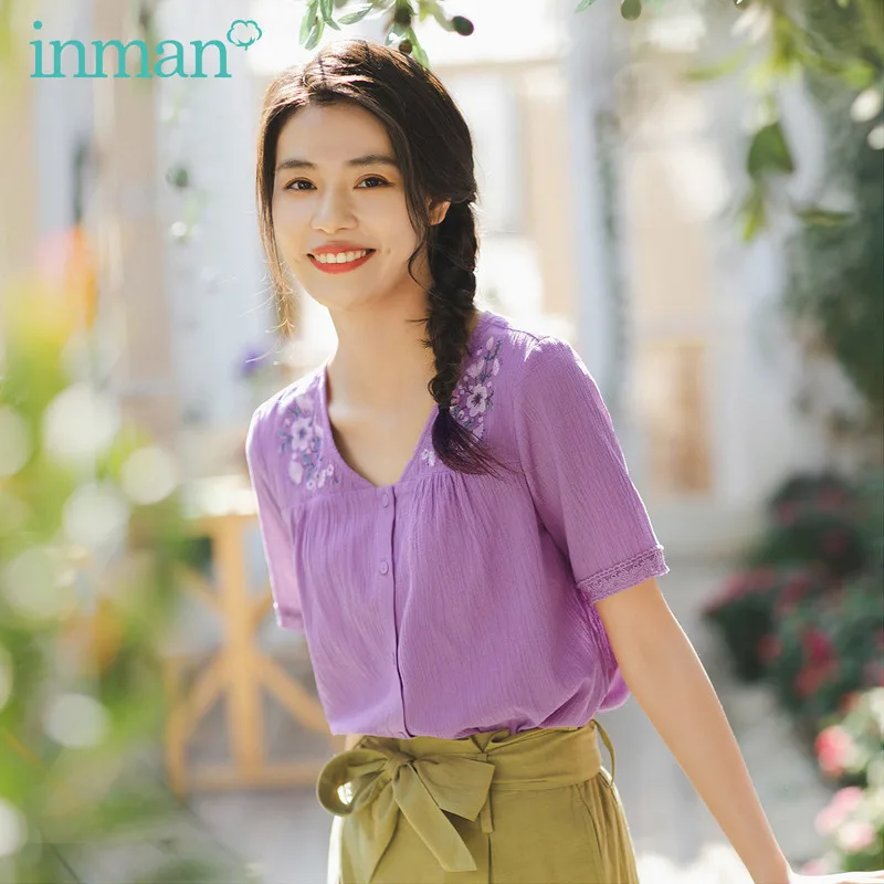 INMAN Summer New Arrival French Elegant Style Artsy Embroidery Lace Sleeve Breathable Material Short Sleeve Blouse
