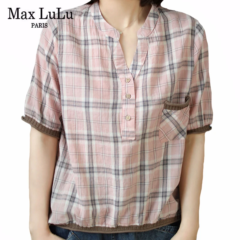 Max LuLu, новинка 2020, китайский модный стиль, летние женские клетчатые блузки с принтом, женские повседневные рубашки с коротким рукавом, Винтажные льняные Топы
