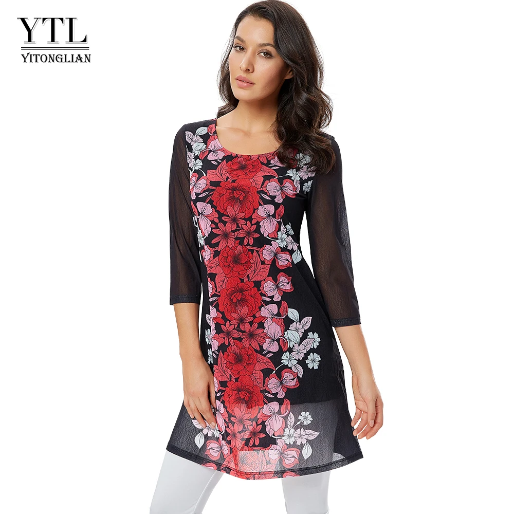 Туника женская, летняя, длинная, с рукавом 3/4, большого размера