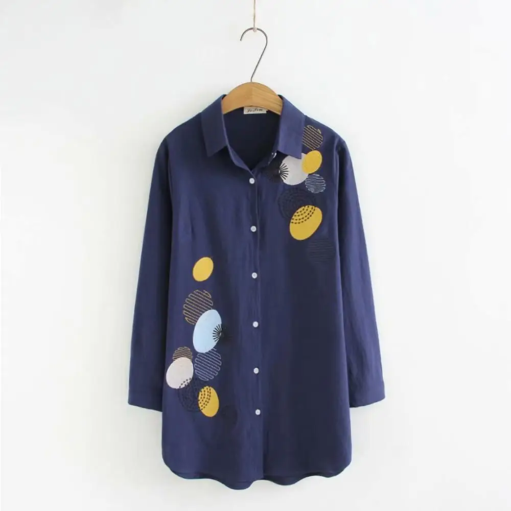 Большие размеры Вышивка кисточка женская блузка 2019 Весна Новые повседневные женские с v-образным вырезом хлопковые рубашки женские темно-с...